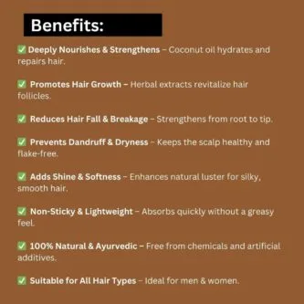 Coconut Oil: Known for its deep moisturizing and nourishing properties, coconut oil adds shine, restores vitality, and helps control frizz, leaving hair soft and manageable.