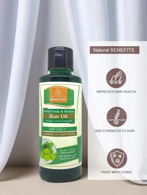 Khadi Pure Herbal Ayurvedic Coconut Hair Oil is a luxurious, non-greasy formula designed to restore shine, luster, and hydration to your hair. Made from pure coconut oil, this hair oil helps control frizz and adds a natural radiance to dull, dry hair without weighing it down. Free from paraffin, mineral oils, and parabens, it nourishes and moisturizes your scalp and hair, leaving your locks soft, shiny, and frizz-free. Ideal for all hair types, it enhances hair color and highlights, giving your hair a healthy, vibrant glow.