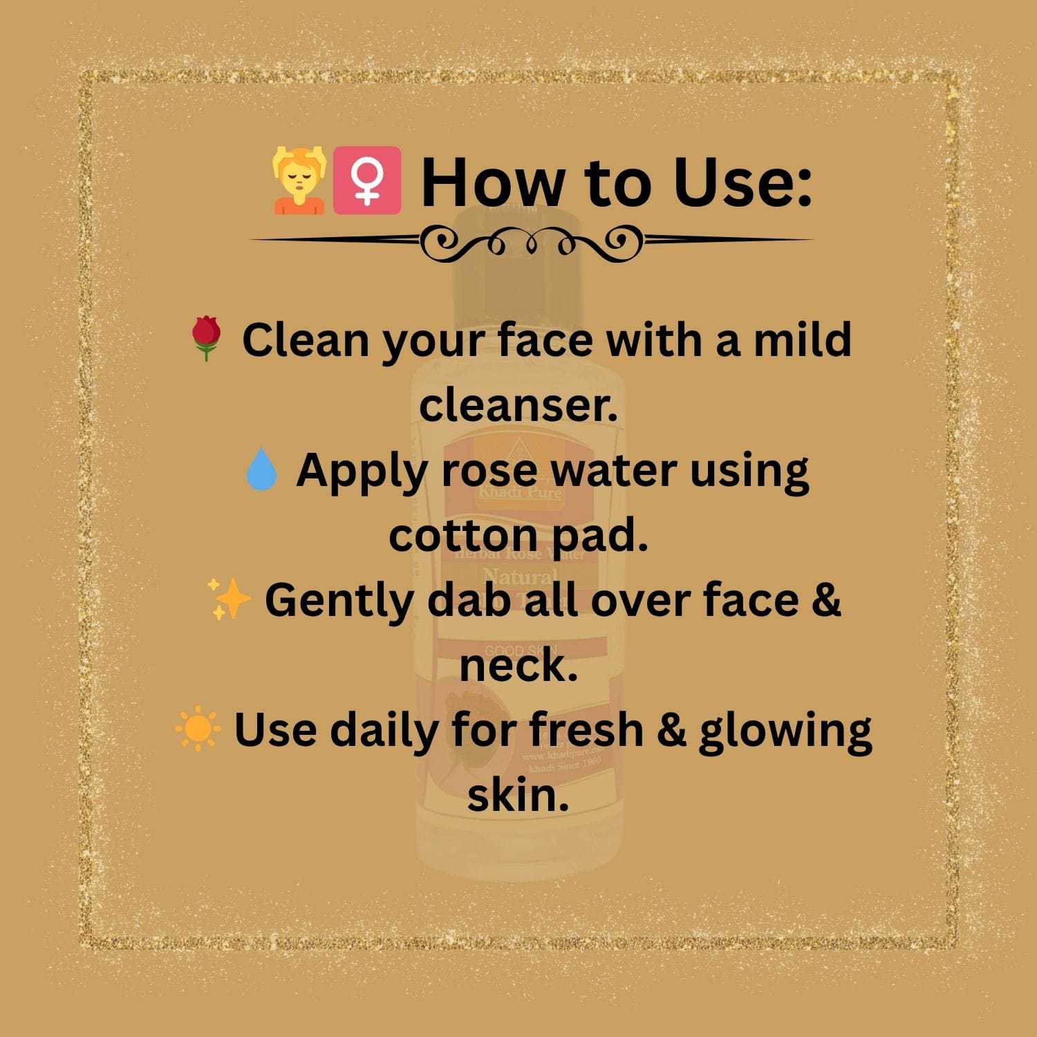 This pure herbal rose water acts as a natural moisturiser and contains no preservatives. Natural rosewater hydrates, cleanses, tones the skin & makes it radiant. With its heavenly fragrance & matchless purity rosewater also has a calming effect. It can be used as a paste maker in face packs & in water at the bathing time. Ingredients: steam distilled rosewater.
